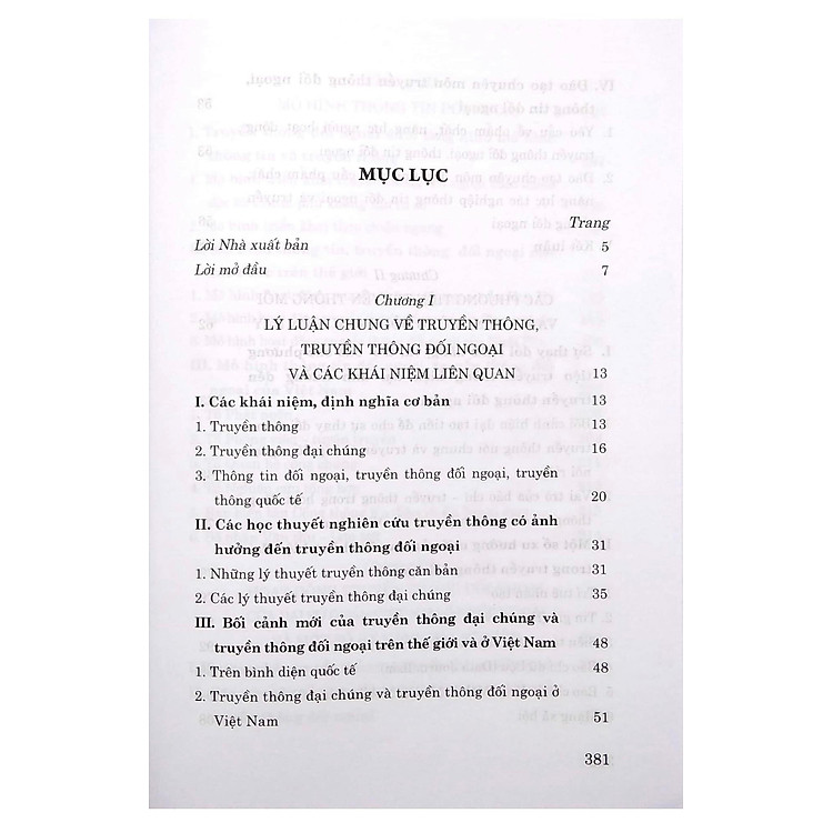 Cuốn sách được chia thành 6 chương, mỗi chương đều mang đến những kiến thức và khái niệm cơ bản, giúp người đọc có cái nhìn tổng quan về truyền thông đối ngoại. Các chương đầu tiên sẽ giới thiệu về lý thuyết cơ bản, sau đó đi sâu vào các kỹ năng cần thiết như viết báo chí, lập kế hoạch truyền thông và quản lý khủng hoảng. Điều này sẽ trang bị cho bạn những công cụ cần thiết để thực hiện các chiến dịch truyền thông hiệu quả.