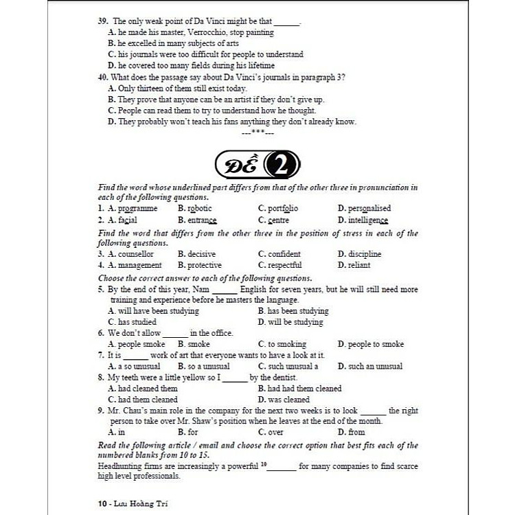 gồm các đề thi dựa trên nội dung Chương trình Giáo dục phổ thông 2018 môn Tiếng Anh.