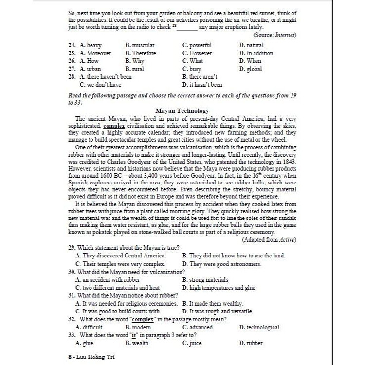 - Biên soạn dựa trên cấu trúc đề thi và đề minh họa của Bộ Giáo dục và Đào tạo.