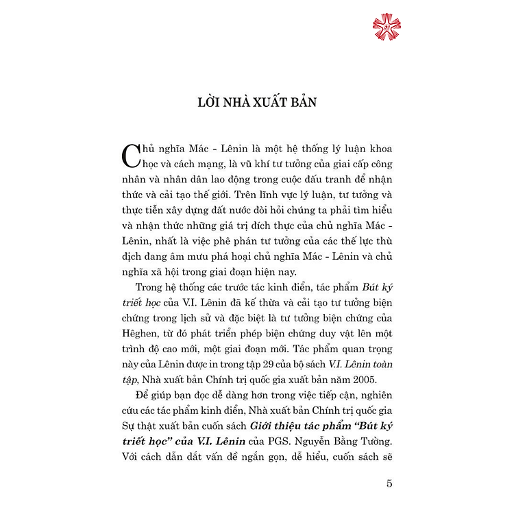 Cuốn sách được PGS. Nguyễn Bằng Tường giới thiệu một cách ngắn gọn, dễ hiểu nhưng vẫn giữ được độ sâu sắc của tư tưởng Lênin. Những nội dung chính như phép biện chứng, nhận thức luận và lôgích học đều được trình bày rõ ràng, giúp người đọc dễ dàng tiếp cận và hiểu được tư tưởng của Lênin.