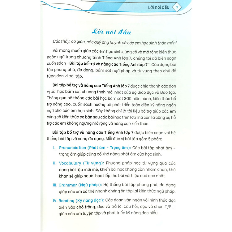 - Bài tập bổ trợ và nâng cao Tiếng Anh cho lớp 7, Tập 2, theo chương trình của Bộ Giáo dục và Đào tạo.