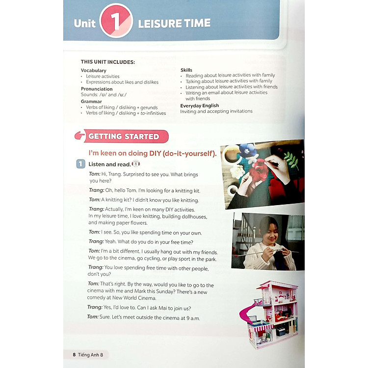 Sách Tiếng Anh 8 được xây dựng xoay quanh 4 chủ điểm gần gũi với học sinh, bao gồm: Cộng đồng của chúng ta, Di sản của chúng ta, Thế giới của chúng ta. Mỗi chủ đề không chỉ giúp học sinh làm quen với từ vựng và ngữ pháp mới mà còn khuyến khích các em khám phá, tìm hiểu về môi trường xung quanh và các vấn đề xã hội hiện đại. Điều này không chỉ giúp học sinh tự tin hơn khi giao tiếp bằng tiếng Anh mà còn nâng cao nhận thức về văn hóa và giá trị nhân văn.