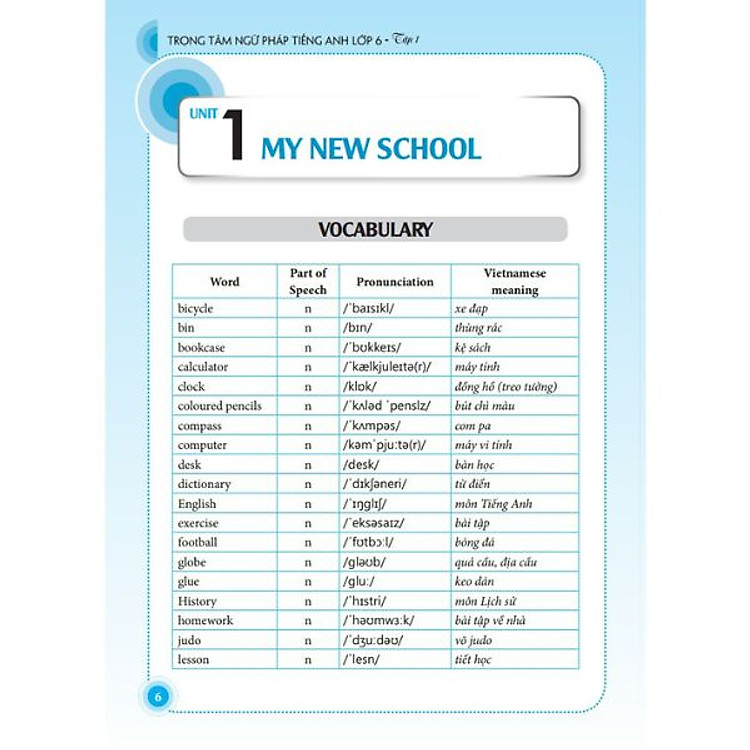 Trọng tâm ngữ pháp Tiếng Anh 6 tập 1: Unit 1 – Unit 6