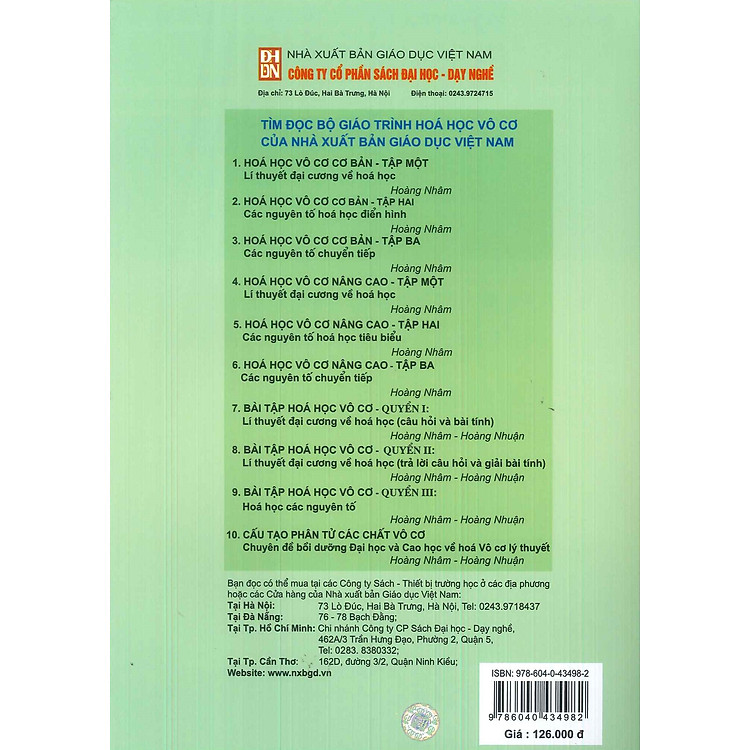 Các thông tin khác: Hóa Học Vô Cơ Cơ Bản, Tập 3: Các Nguyên Tố Chuyển Tiếp (Tái bản lần thứ 14 – năm 2024)