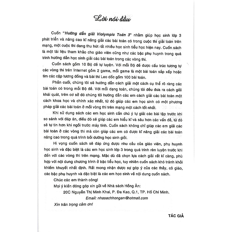 Các thông tin khác: Hướng Dẫn Giải Violympic Toán Lớp 3 (Tái Bản 2024)