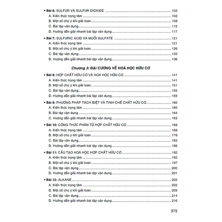 - Nội dung mỗi bài học được chia thành 4 mục: Kiến thức trọng tâm, chú ý giải toán, bài tập vận dụng và hướng dẫn giải nhanh.