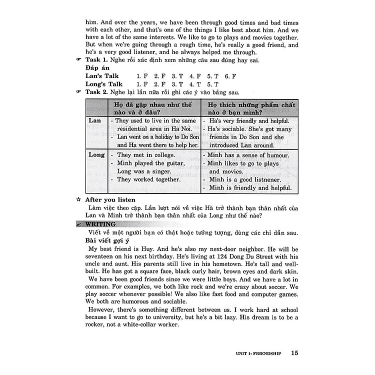 - Có phần giải và dịch bài học, khuyến khích học sinh tự làm bài và nghe băng trước khi tham khảo.