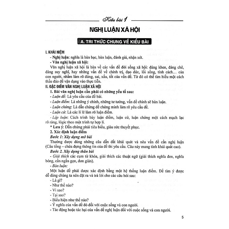 - Thành phần: Bao gồm kiến thức cơ bản và các dạng bài văn nghị luận xã hội, nghị luận văn học.