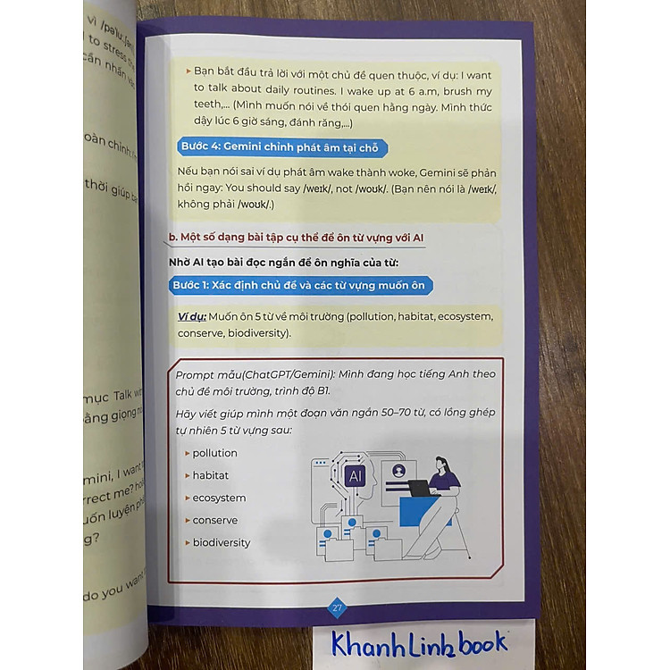- Cuốn sách hướng dẫn tự học tiếng Anh bằng AI như ChatGPT/Gemini.