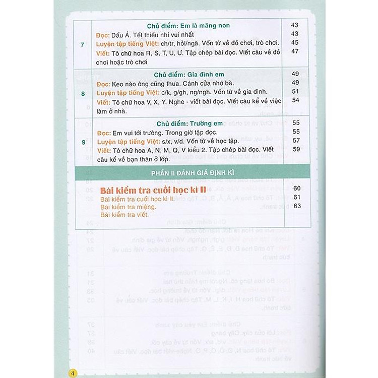 - Nội dung: Bao gồm bài luyện tập, đánh giá thường xuyên và định kỳ về đọc, viết chính tả, và viết đoạn văn.