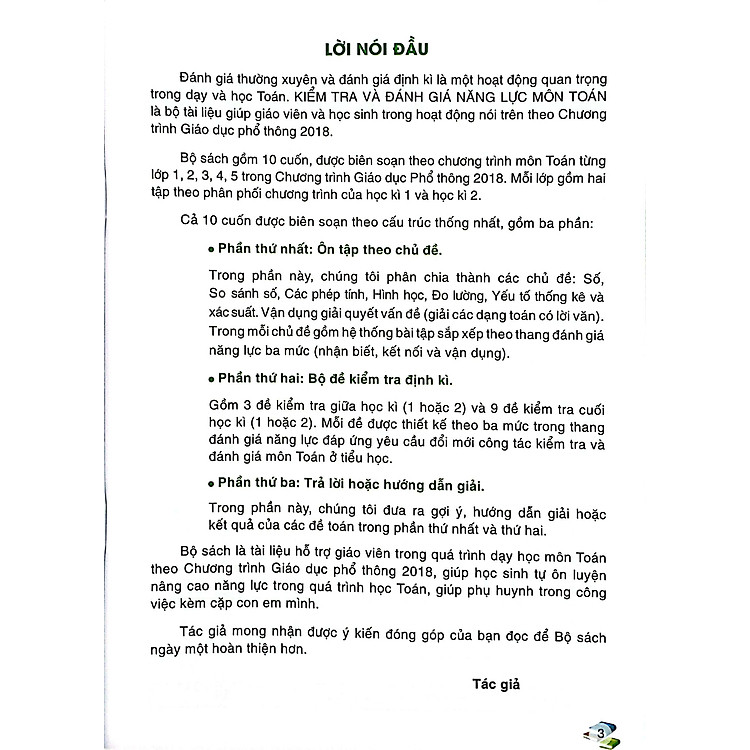 Đánh giá thường xuyên và đánh giá định kì là một hoạt động quan trọng trong dạy và học toán. KIỂM TRA VÀ ĐÁNH GIÁ NĂNG LỰC MÔN TOÁN là bộ tài liệu giúp giáo viên và học sinh trong hoạt động nói trên theo Chương trình Giáo dục phổ thông 2018.