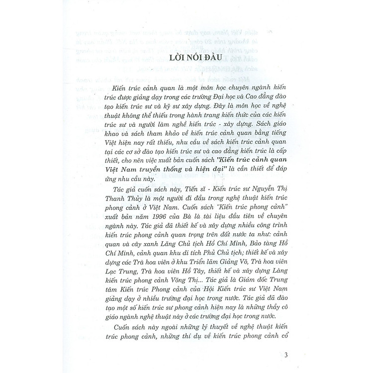 Kiến trúc cảnh quan là một lĩnh vực hấp dẫn, đóng vai trò quan trọng trong việc tạo ra môi trường sống hài hòa và bền vững. Cuốn sách “Kiến Trúc Cảnh Quan Việt Nam – Truyền Thống Và Hiện Đại” do NXB Xây Dựng phát hành, mang đến cái nhìn sâu sắc về sự phát triển của kiến trúc cảnh quan tại Việt Nam, từ những giá trị văn hóa truyền thống đến những xu hướng hiện đại.