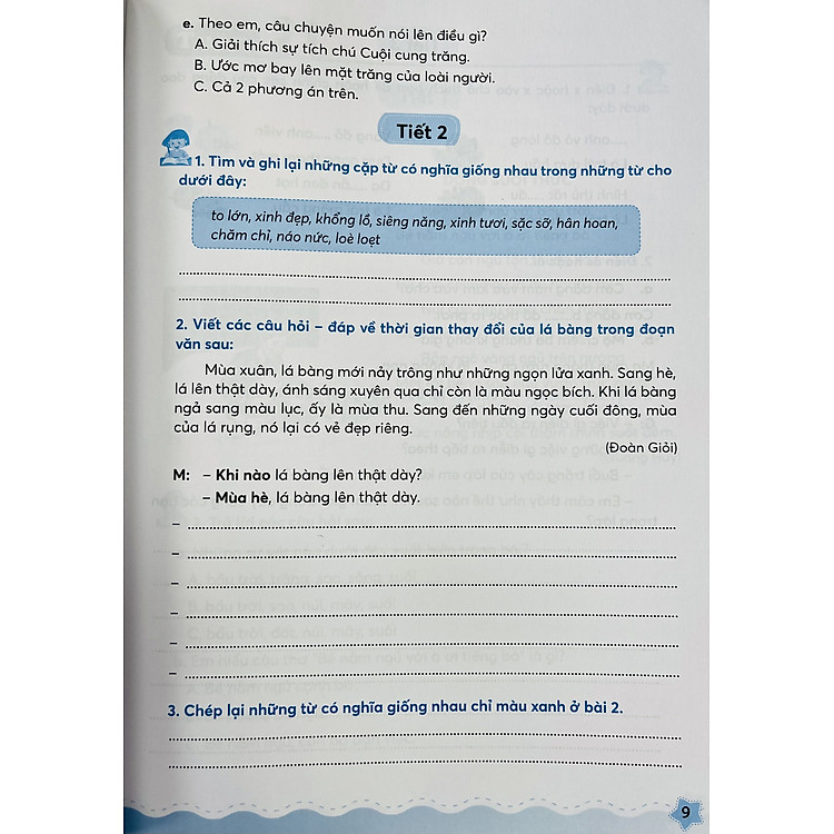 Các văn bản được tuyển chọn cẩn thận; nội dung gần gũi, phù hợp với học sinh nhằm củng cố các kĩ năng Đọc – Viết – Nói – Nghe thông qua các văn bản tương ứng về từng chủ điểm. Hệ thống câu hỏi đọc hiểu, bài tập chính tả, bài tập mở rộng vốn từ, phát triển câu, viết đoạn văn, được biên soạn – thiết kế phong phú, sinh độngGiá sản phẩm trên Tiki đã bao gồm thuế theo luật hiện hành. Bên cạnh đó, tuỳ vào loại sản phẩm, hình thức và địa chỉ giao hàng mà có thể phát sinh thêm chi phí khác như phí vận chuyển, phụ phí hàng cồng kềnh, thuế nhập khẩu (đối với đơn hàng giao từ nước ngoài có giá trị trên 1 triệu đồng)…..