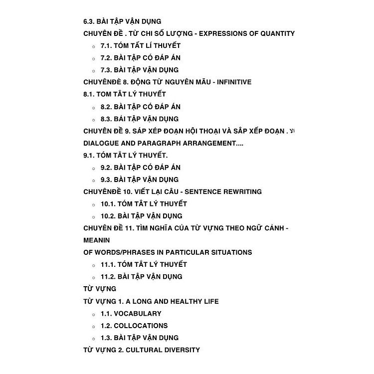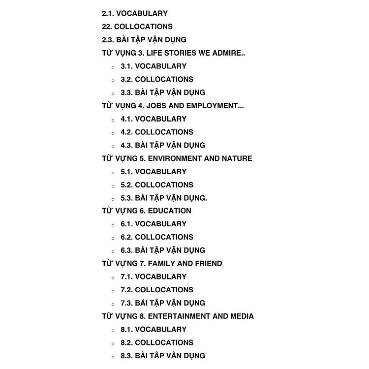- Chuyên đề từ vựng: Đề cập đến các chủ đề như môi trường, giáo dục, và công việc.