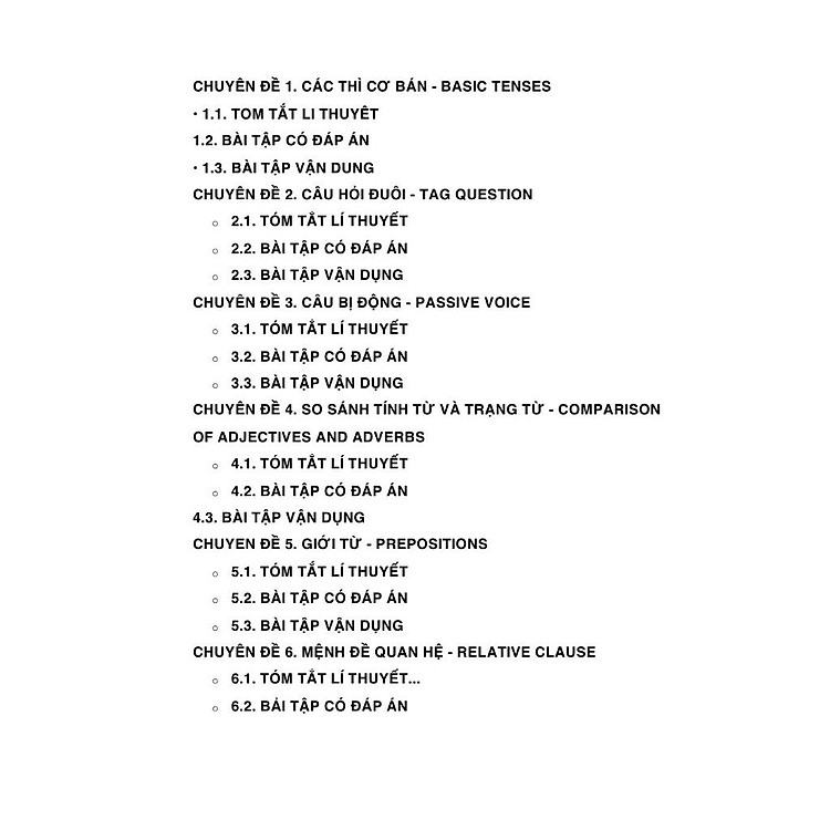 - Chuyên đề ngữ pháp: Từ các thì cơ bản đến câu bị động, câu hỏi đuôi, và viết lại câu.