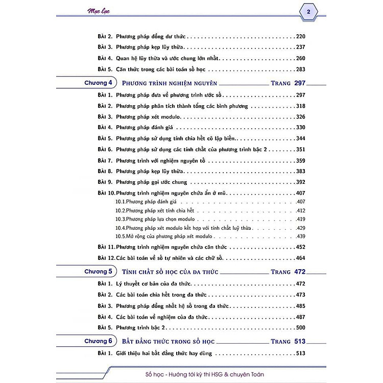 - Chương nổi bật: Chương về phương trình nghiệm nguyên tổng hợp kiến thức và kỹ thuật của các loại phương trình.
