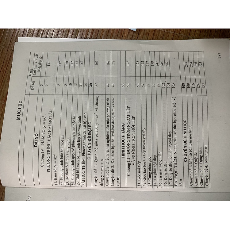- Nội dung tập 2: Đại số (hệ hai phương trình bậc nhất, hàm y = ax^2) và Hình học (góc với đường tròn, hình trụ, nón, cầu, quỹ tích).