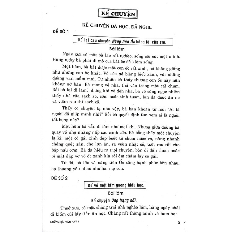 Cuốn sách Những Bài Văn Hay Lớp 4 không chỉ đơn thuần là một tập hợp các bài văn mẫu mà còn là một nguồn tài liệu tham khảo phong phú cho các em học sinh. Các bài văn trong sách được chọn lọc kỹ lưỡng, giúp các em hiểu rõ hơn về cấu trúc và phong cách viết. Bên cạnh đó, cuốn sách cũng cung cấp nhiều chủ đề phong phú, từ miêu tả đến biểu cảm, giúp các em phát triển tư duy sáng tạo và khả năng diễn đạt.