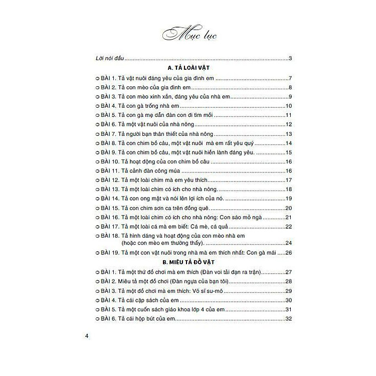 - Cuốn sách “Những bài văn miêu tả lớp 4” là phần ba trong bộ sách làm văn miêu tả cho Tiểu học.