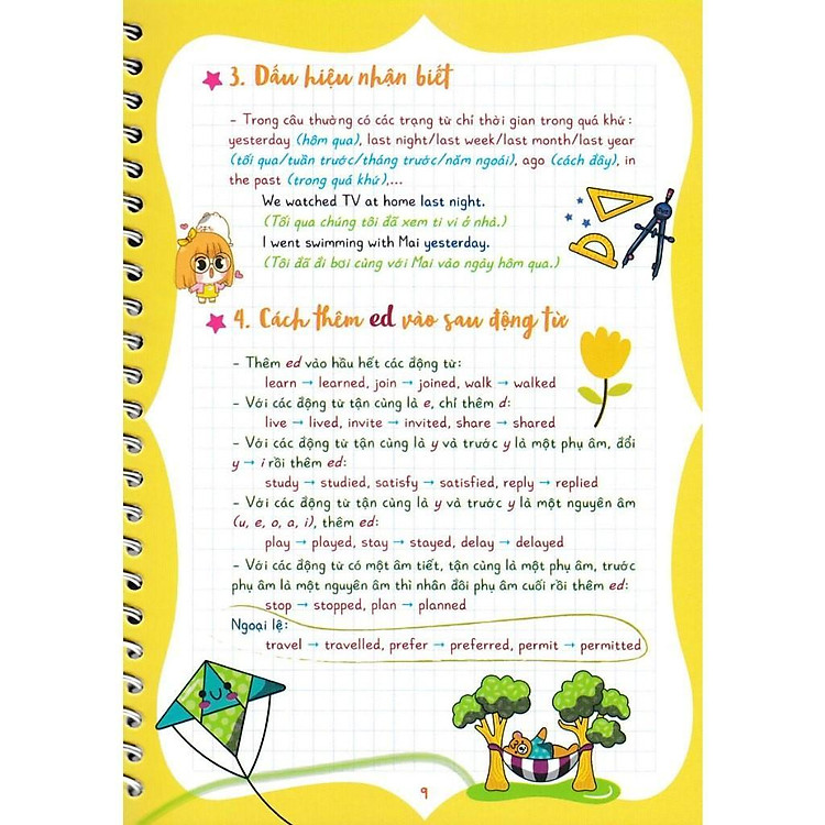 Thiết kế nhỏ gọn và dễ mang theo là một điểm cộng lớn, cùng với các sticker dễ thương khiến việc học trở nên thú vị hơn. Nội dung sách bao gồm đầy đủ các chủ đề cần thiết trong chương trình học, từ cách dùng các thì, cho đến các khái niệm ngữ pháp cơ bản như trạng từ chỉ tần suất, giới từ, và nhiều điểm ngữ pháp khác.