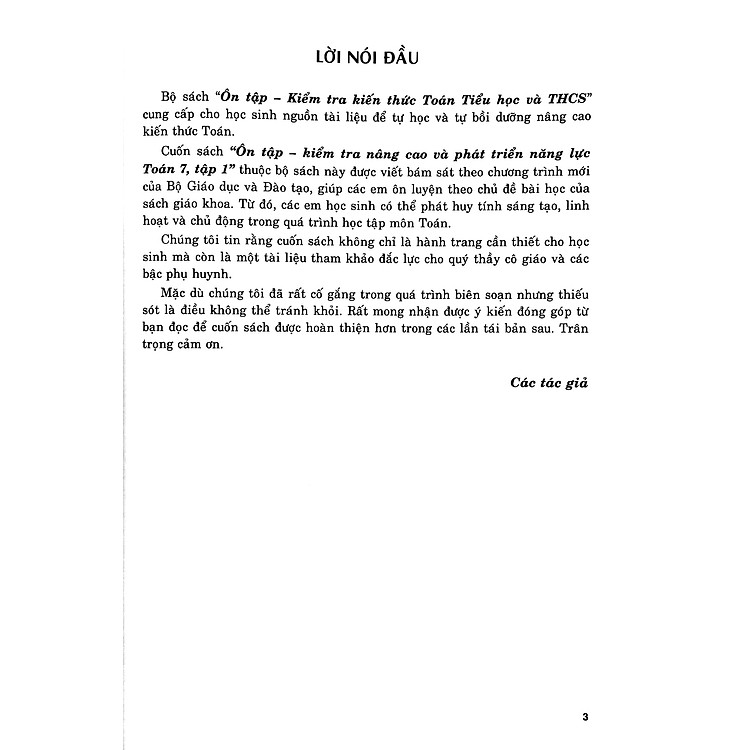 - Cuốn “Ôn tập – kiểm tra nâng cao và phát triển năng lực Toán 7 – tập 1” theo chương trình mới của Bộ Giáo dục và Đào tạo.