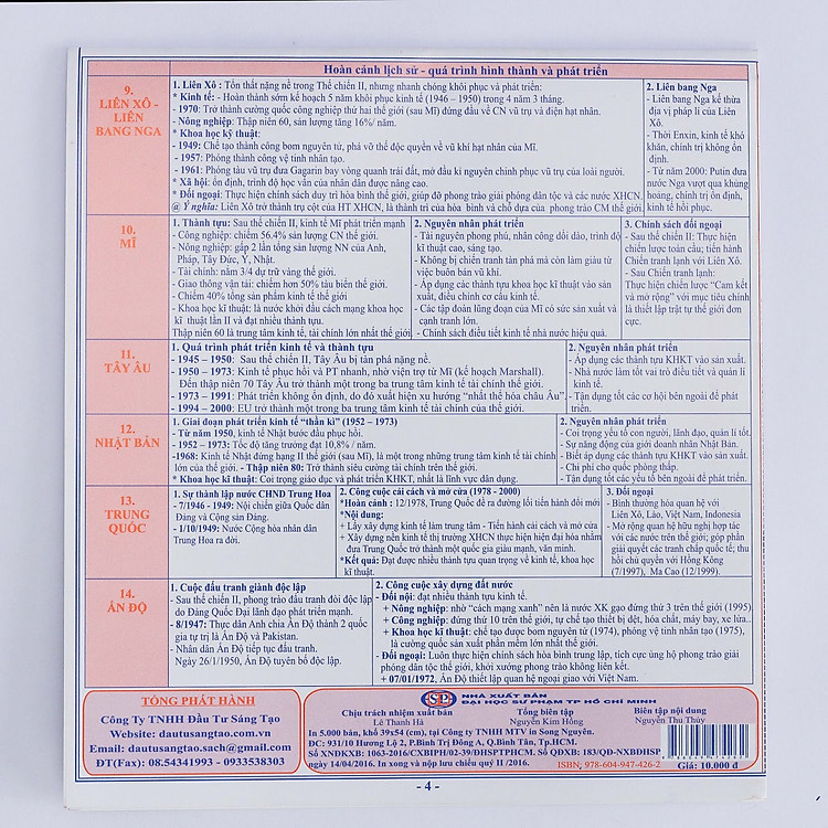 Ấn phẩm hệ thống đầy đủ kiến thức cơ bản môn Lịch Sử chương trình THPT, được trình bày trực quan, giúp các em học sinh dễ dtra tìm , ghi nhớ, tự ôn tập phục vụ các kì thi.Giá sản phẩm trên Tiki đã bao gồm thuế theo luật hiện hành. Bên cạnh đó, tuỳ vào loại sản phẩm, hình thức và địa chỉ giao hàng mà có thể phát sinh thêm chi phí khác như phí vận chuyển, phụ phí hàng cồng kềnh, thuế nhập khẩu (đối với đơn hàng giao từ nước ngoài có giá trị trên 1 triệu đồng)…..