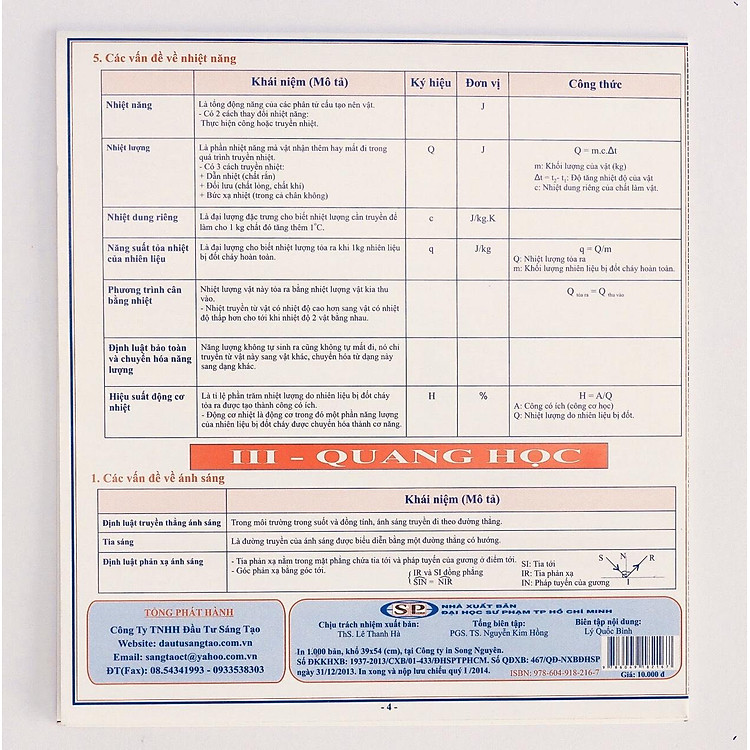 Ấn phẩm hệ thống toàn bộ kiến thức Vật lý trong chương trình THCS, được trình bày trực quan, theo trình tự khoa học, dễ hiểu, giúp các em học sinh dễ dàng ghi nhớ, tự ôn tập phục vụ các kì thi.