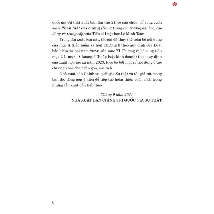 Các thông tin khác: Pháp luật đại cương (xuất bản lần thứ 21, có sửa chữa, bổ sung) – bản in 2024