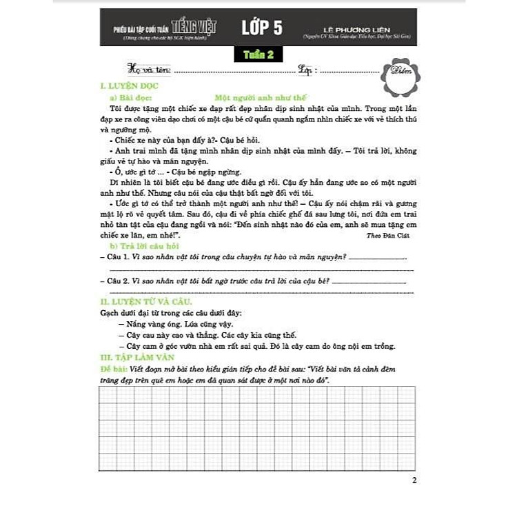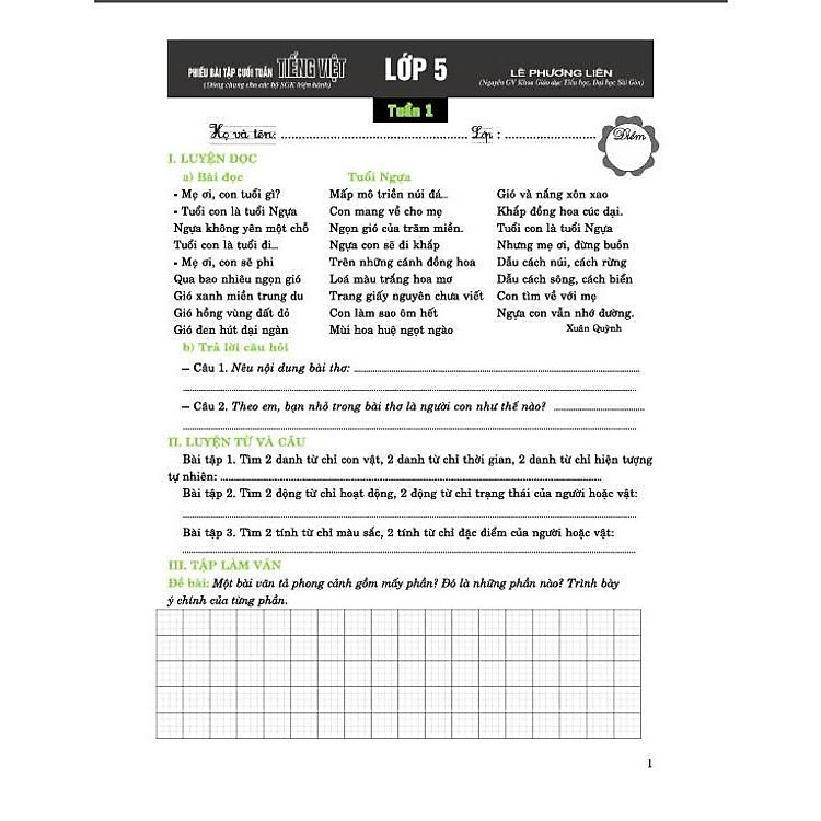 Các thông tin khác: Phiếu Bài Tập Cuối Tuần Tiếng Việt Lớp 5