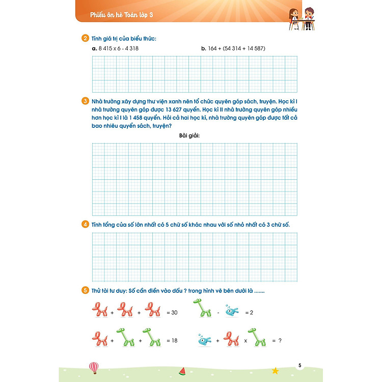 Các thông tin khác: Phiếu Ôn Hè Toán Lớp 3