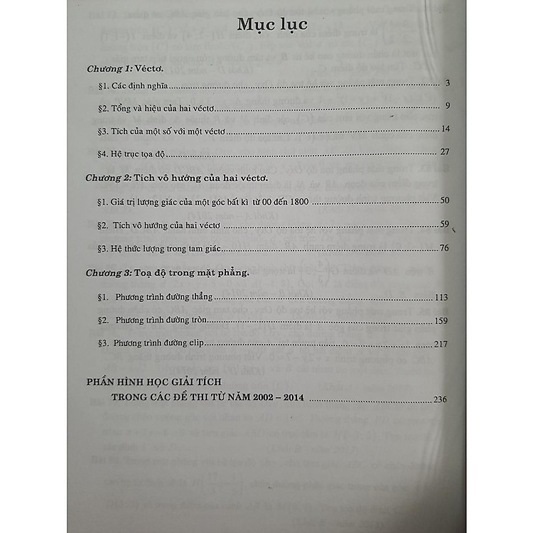 Sách được chia thành nhiều chương, mỗi chương tập trung vào một chủ đề cụ thể như vectơ, tích vô hướng và tọa độ trong mặt phẳng. Các định nghĩa và công thức được trình bày ngắn gọn, dễ hiểu, giúp học sinh nhanh chóng tiếp thu và áp dụng vào bài tập.