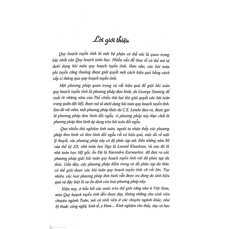 Cuốn sách bao gồm nhiều phần học tập phong phú, từ lý thuyết cơ bản đến ứng dụng thực tiễn của phương pháp nón xoay trong quy hoạch tuyến tính. Những kiến thức trong sách không chỉ giúp sinh viên nắm vững các khái niệm cơ bản mà còn trang bị cho họ các kỹ năng cần thiết để áp dụng vào thực tế công việc sau này.