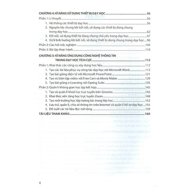 Sách không chỉ đơn thuần là lý thuyết mà còn cung cấp những kĩ năng thực tiễn như kĩ năng trình bày bảng, kĩ năng thuyết trình và kĩ năng sử dụng thiết bị dạy học. Mỗi phần đều được trình bày một cách rõ ràng và dễ hiểu, giúp giáo viên dễ dàng áp dụng vào thực tế. Đặc biệt, việc ứng dụng công nghệ trong giảng dạy cũng được nhấn mạnh, khuyến khích giáo viên sử dụng các công cụ hiện đại để nâng cao tính tương tác và hấp dẫn trong bài học.