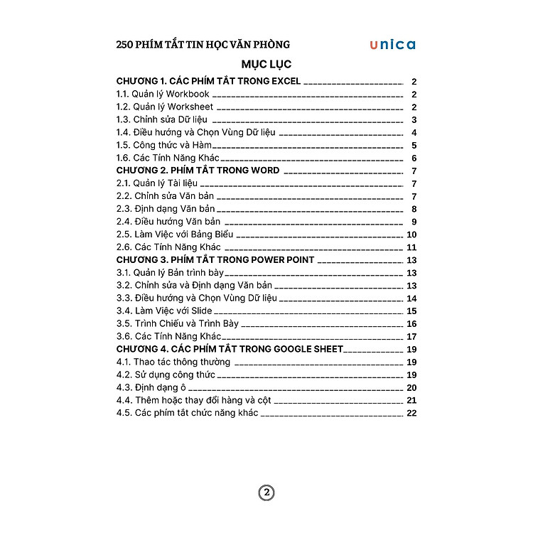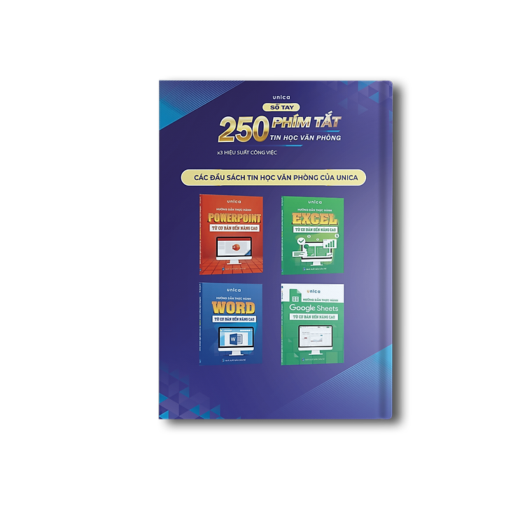 Sổ tay 250 Phím Tắt Tin Học Văn Phòng của Unica là một công cụ tuyệt vời cho những ai muốn nâng cao hiệu suất làm việc của mình. Với những phím tắt được biên soạn khoa học, sản phẩm này giúp người dùng tiết kiệm thời gian và tăng cường kỹ năng sử dụng các phần mềm văn phòng phổ biến như Excel, Word, PowerPoint và Google Sheets.