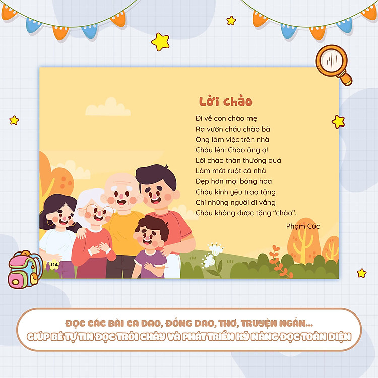 Tích hợp thơ, ca dao, đồng dao, truyện ngắn – tăng vốn từ, rèn kỹ năng đọc hiểu và nuôi dưỡng tâm hồn bé qua những nội dung gần gũi, giàu cảm xúc.