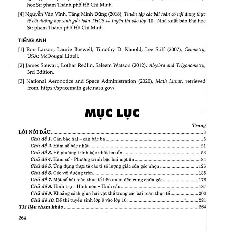 Ngoài những bài toán nội dung thực tế có phân tích tìm tòi lời giải, cuốn sách còn tuyển chọn một số đề thi thực tế những năm gần đây. Chính vì thế cuốn sách có tính thời sự và là tài liệu tham khảo bổ ích cho các em chuẩn bị thi lớp 9 vào lớp vọng, với lối viết sư phạm, dễ hiểu, dễ đọc, hình vẽ biểu diễn trực quan, các tác giả sẽ giúp các bạn độc giả nắm bắt được và hình thành cho mình cách thức giải quyết các bài toán thực tế và bạn đọc sẽ nắm rõ bản chất phương pháp giải, các chủ đề chuyên sâu về toán thực tế.