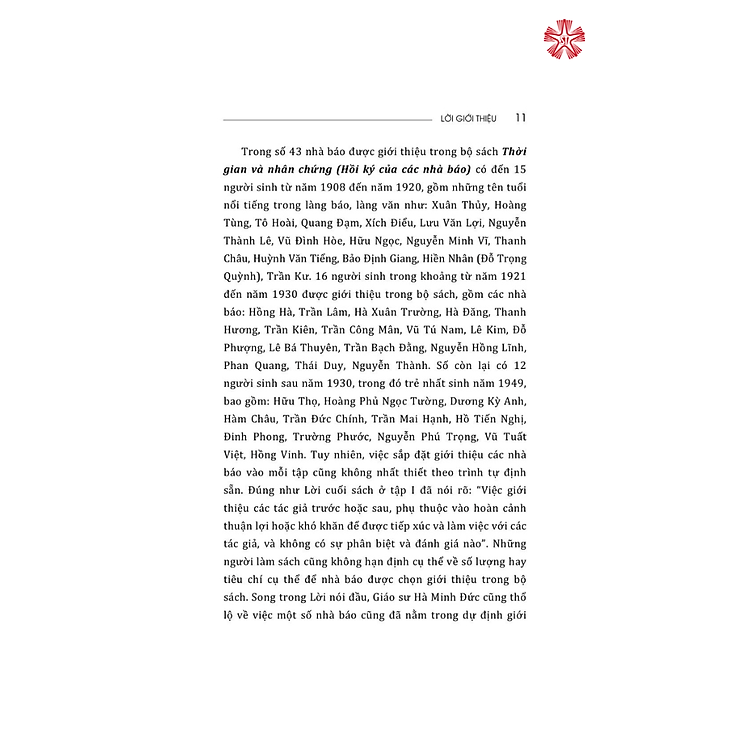 - Bộ sách “Thời gian và Nhân chứng” gồm 3 tập, ghi lại kinh nghiệm làm báo của các nhà báo nổi tiếng Việt Nam.