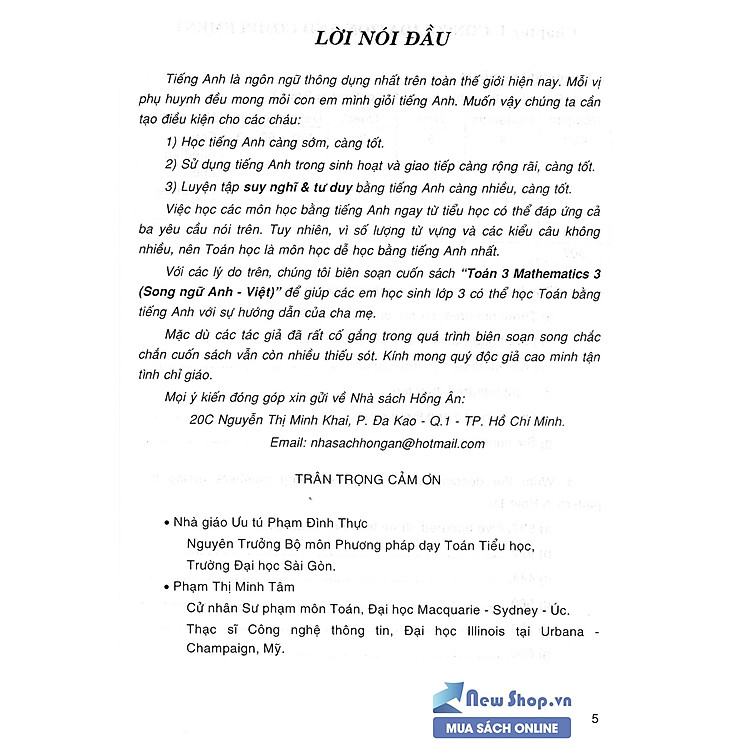 Các thông tin khác: Toán 3 – Mathematics 3 (Song Ngữ Anh Việt)