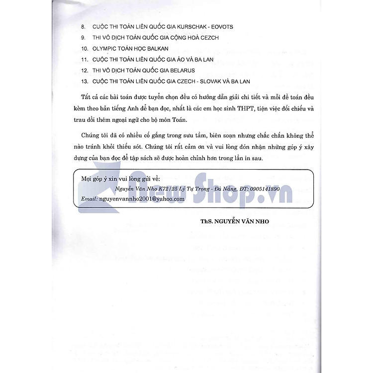 - Cuốn sách “Tuyển Tập Olympic Toán Học Tại Các Nước Đông Âu” của Nhà Sách Hồng Ân.