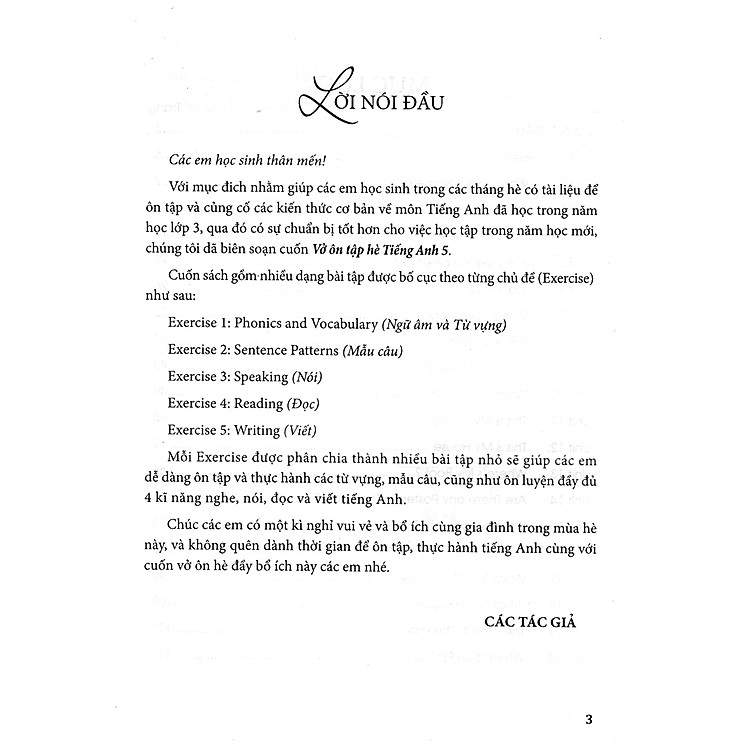 Các thông tin khác: Vở Ôn Tập Hè Tiếng Anh 3