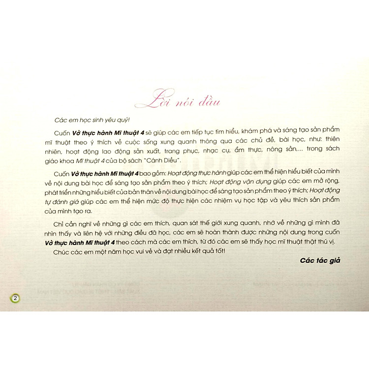 Các thông tin khác: Vở Thực Hành Mĩ Thuật 4 (Cánh Diều) (2023)