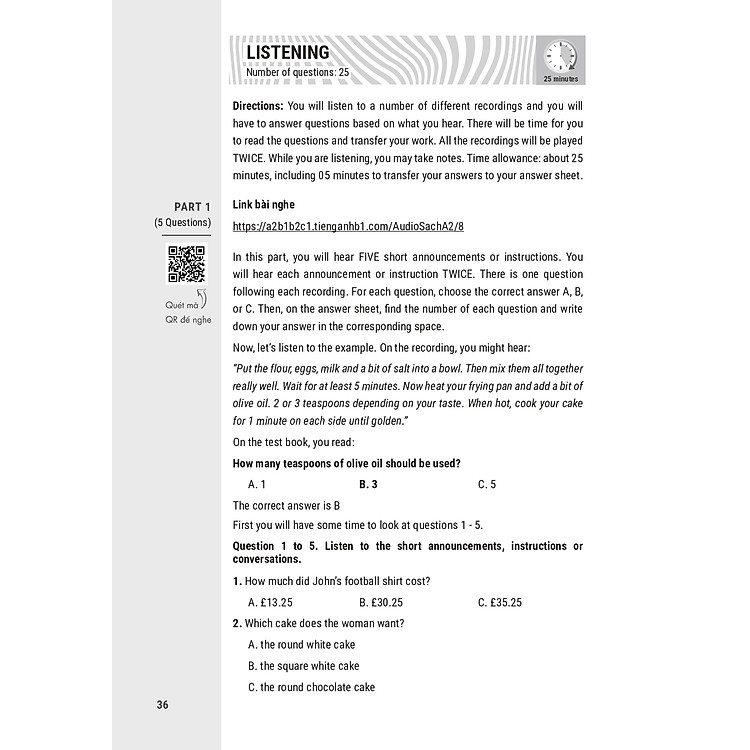- Mã QR tiện ích: Hỗ trợ học viên truy cập bài nghe và video hướng dẫn từ điện thoại.