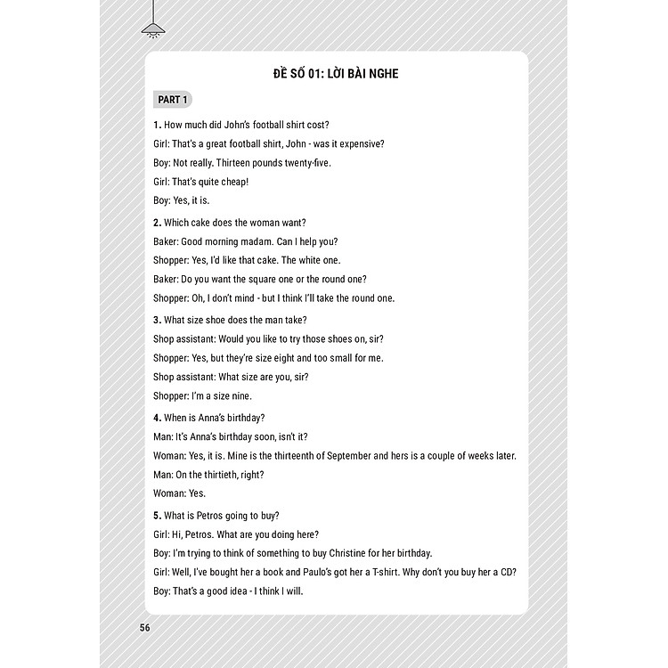 Phần tapescript giúp học viên luyện nghe và hiểu nội dung chi tiết của bài nói, bài hội thoại, hướng dẫn, thông báo.