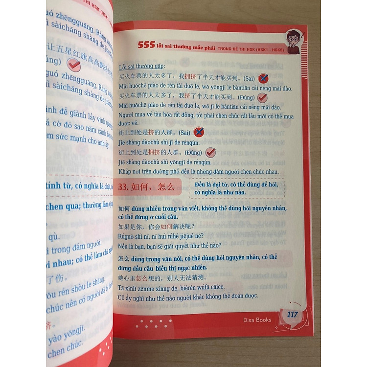 - Cuốn 555 Lỗi Sai tập trung vào các lỗi thường gặp trong đề thi HSK, giúp học viên ôn luyện hiệu quả và khoa học.