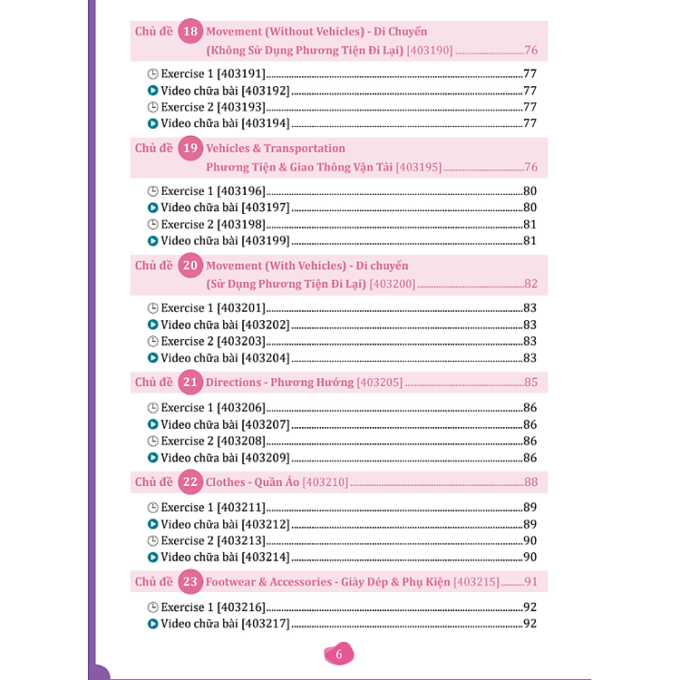 - Mỗi chủ đề đi kèm bài tập từ vựng đa dạng và bài tập luyện nghe.