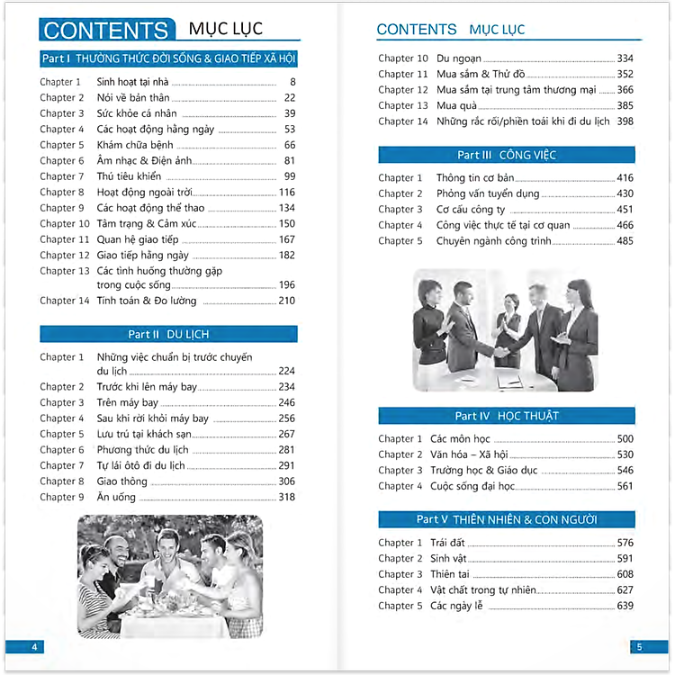 – Nội dung đa dạng: Sách tập trung vào 5 chủ đề, mỗi chủ đề được chia thành nhiều chương giới thiệu đa dạng các tình huống mà người sử dụng tiếng anh thông thạo phải biết.