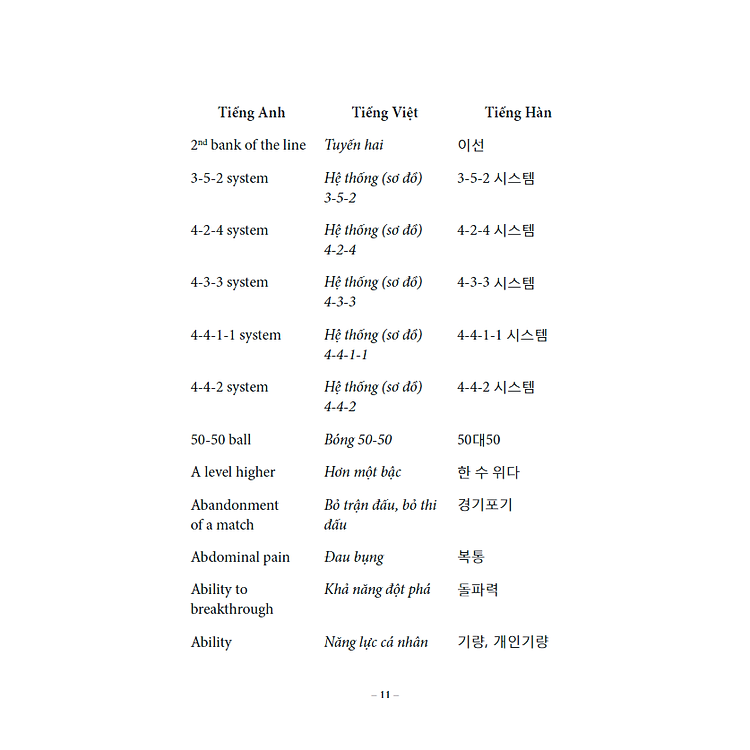 Các thông tin khác: 2000 Từ Vựng Chuyên Ngành Bóng Đá Anh – Việt – Hàn
