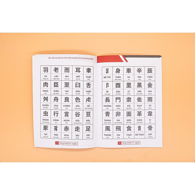 214 Bộ Thủ Cơ Bản Và Quy Tắc Chuyển Âm On Trong Tiếng Nhật – Sách được in màu rõ nét.