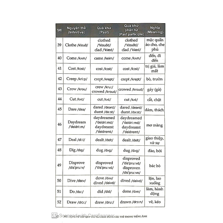 - Ví dụ minh họa cho 360 động từ bất quy tắc.