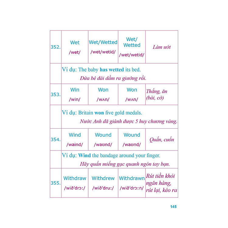 - Cung cấp ví dụ minh họa cho mỗi động từ để dễ dàng hiểu và áp dụng.